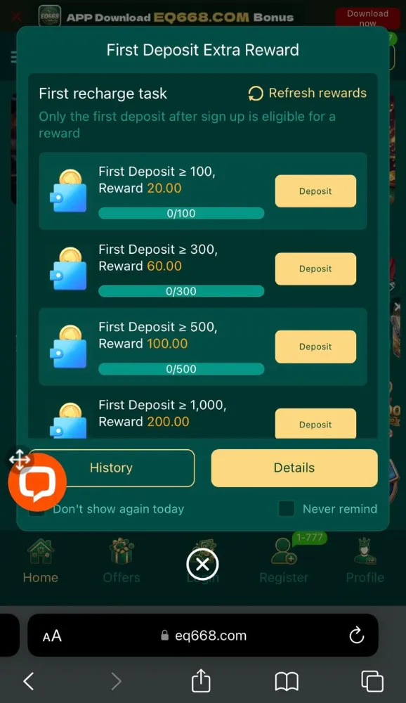 4. Bonuses and Promotions In EQ668 Game