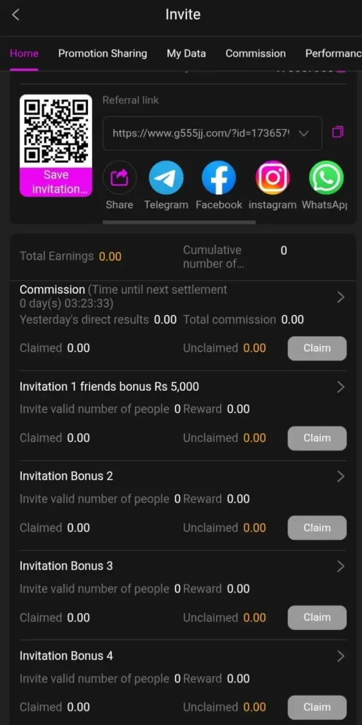 To reach the referral page of the app, simply copy your personal invite link, and share it with your friends on any social media site, WhatsApp, or even by texting it to them.When anyone signs up through your link and begins to play, you immediately receive your referral reward!